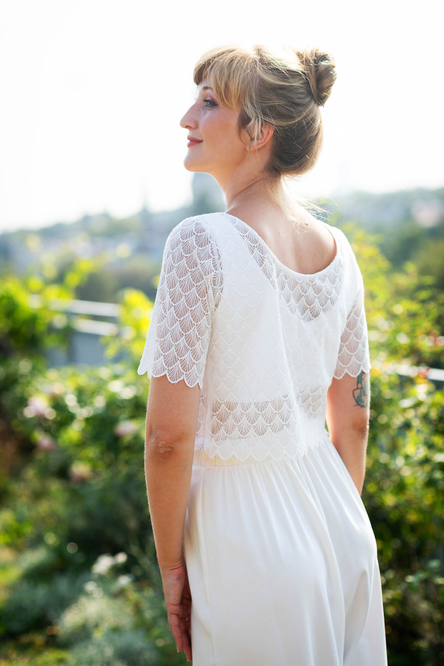 Es gibt viele Möglichkeiten, sie perfekt zu kombinieren, zum Beispiel mit unseren Brauttops Rosie, Aurora oder unserem Brautpullover Eloise.