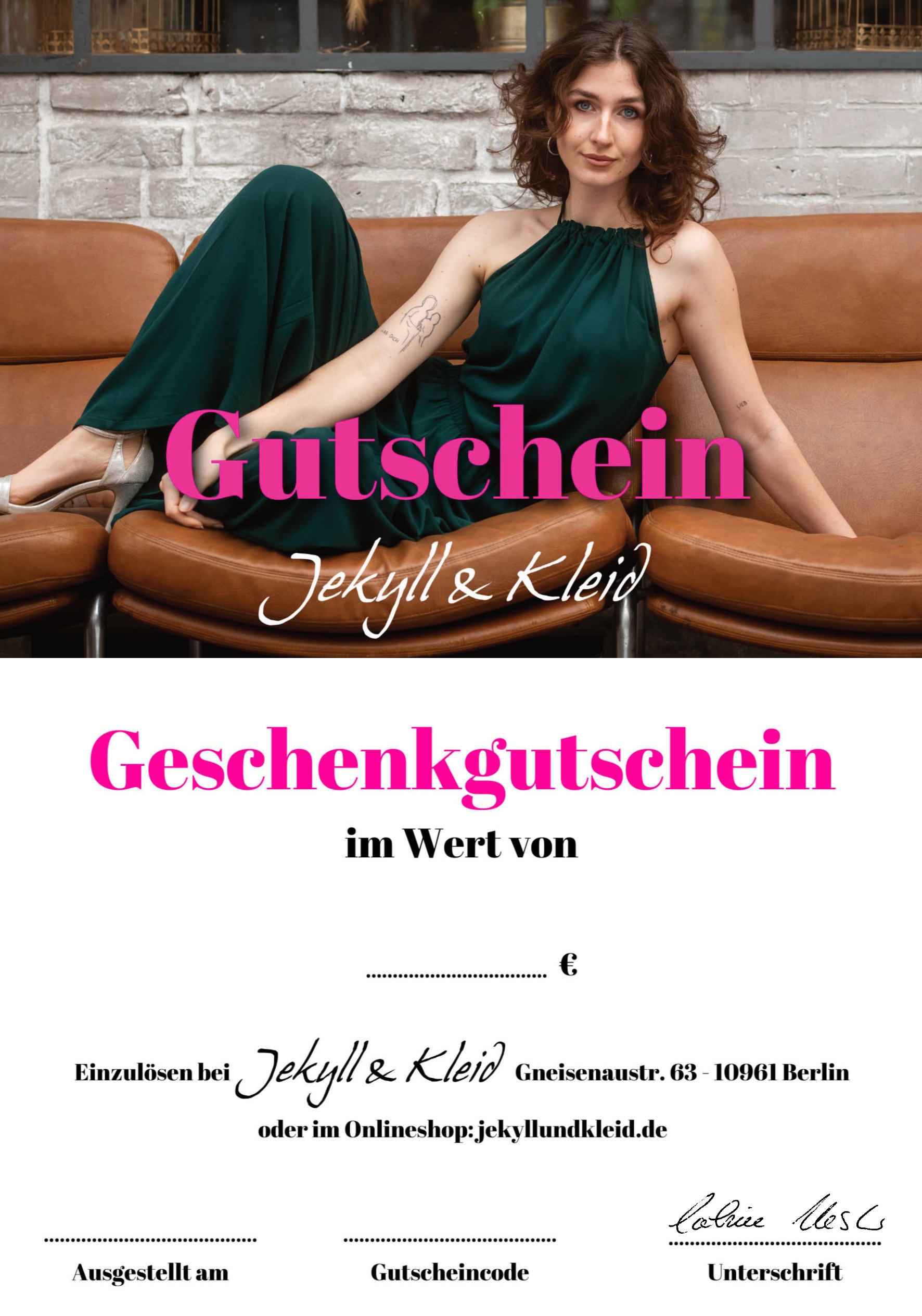 Wähle einfach den gewünschten Betrag aus – und verschenke pure Modefreude. Für einen individuellen Gutschein Betrag schicke uns einfach kurz eine Email.