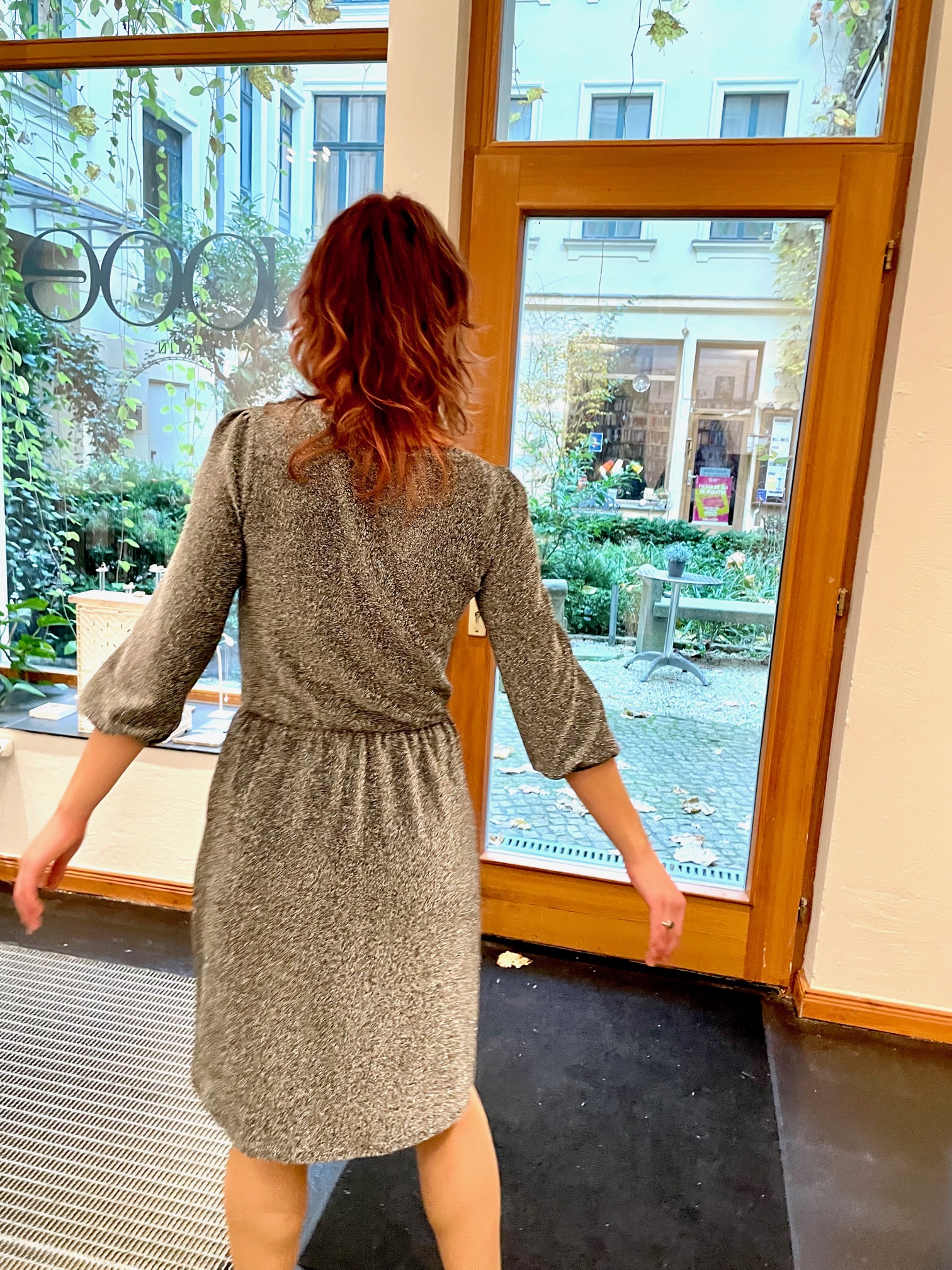 Dieses Kleid kombiniert zeitlose Eleganz mit Raffinesse und lässt sich wunderbar kombinieren. Pheline gibt es auch in Gold Lurex oder in silber.