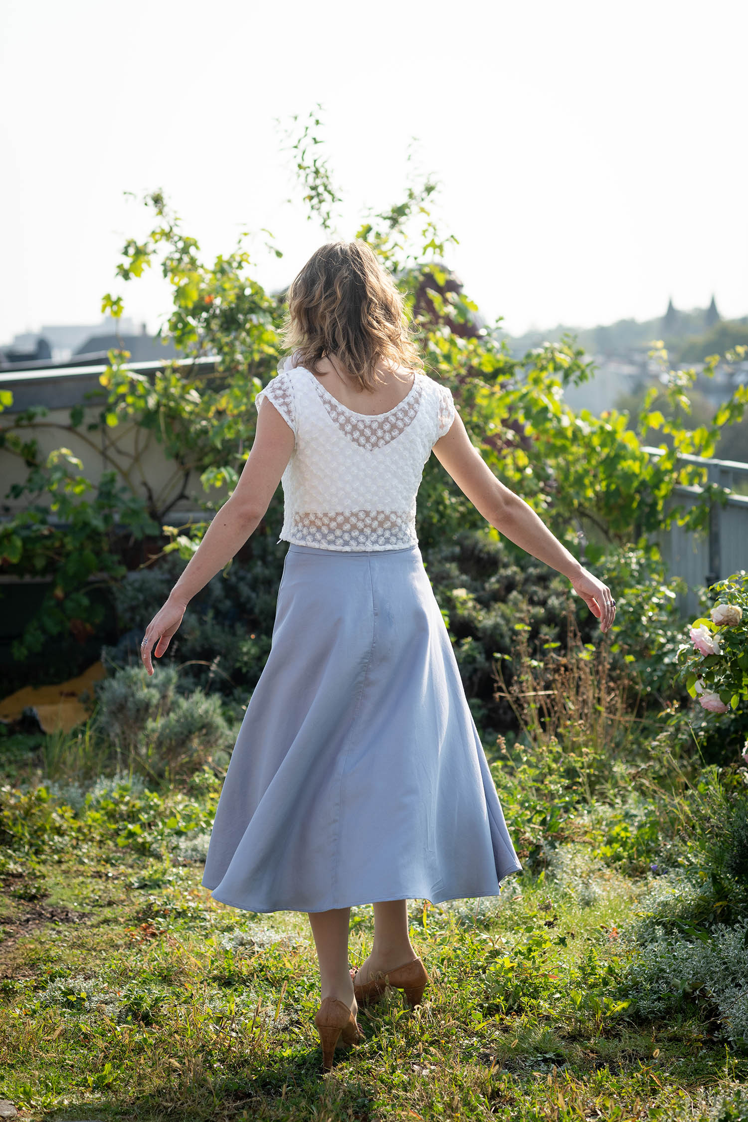 Unser Midirock JOY ist weit geschnitten, wunderbar schwungvoll und sehr feminin. Er ist aus einer seltenen Leinen/Tencelmischung gefertigt, was tolle Trageeigenschaften garantiert. Er ist leicht und hat eine tolle Haptik. Das helle Blau erinnert an das feine Schimmern von Morgentau und verleiht dem Rock eine frische, fast schwerelose Eleganz. Wunderschön.